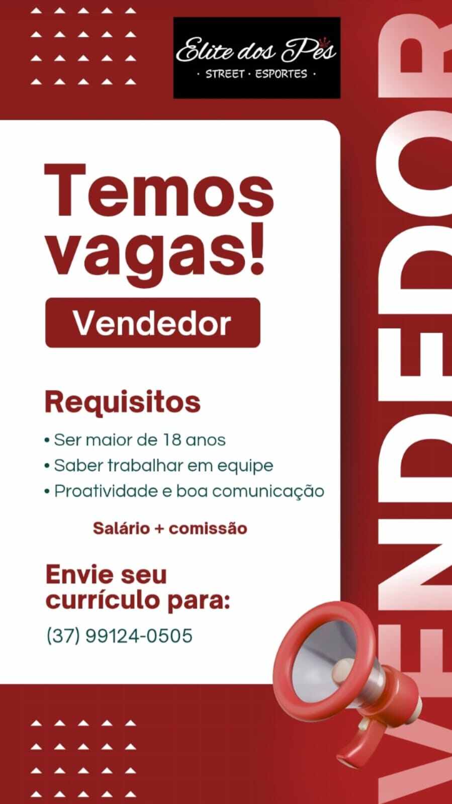 🚨 TEMOS VAGA! VENDEDOR(A) EM DIVINÓPOLIS